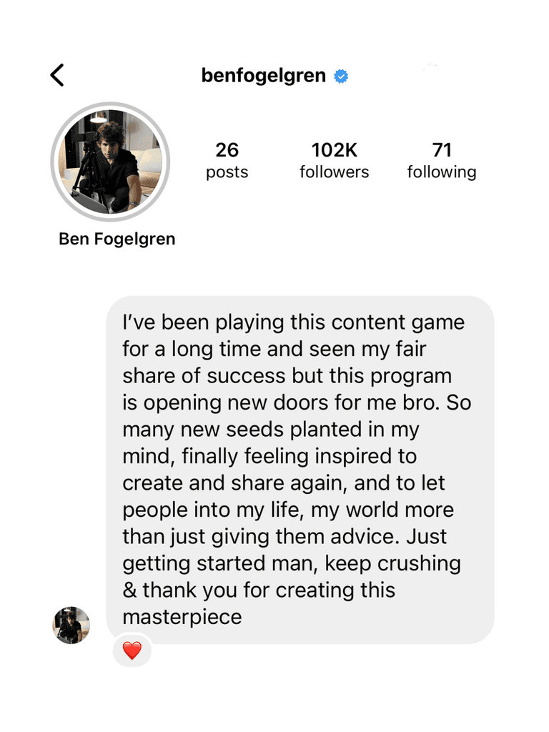 60-minute coaching calls every week to connect with other ambitious creators, and receive in-depth content feedback from our content coach